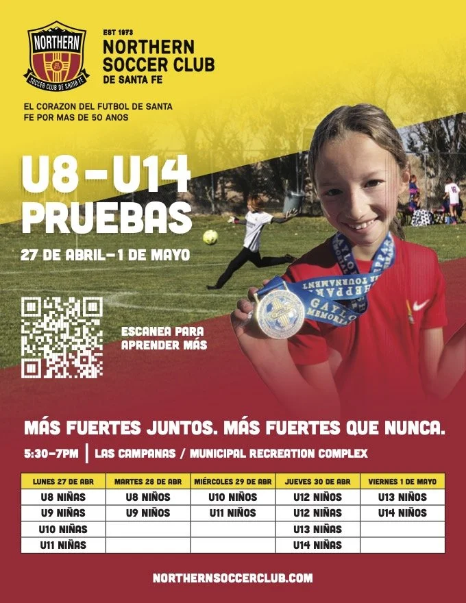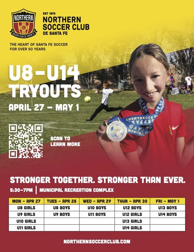 Players train under experienced coaches and compete in the Duke City Soccer League, the USYS Desert Conference National League, in regionally competitive travel tournaments, and local indoor/outdoor leagues. Training takes place at Municipal Recreation Complex soccer fields and various fields throughout the city of Santa Fe; games are primarily held in Bernalillo Soccer Complex.
