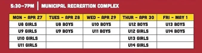 Tryouts for U15 and up will take place in November.
